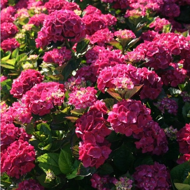 - Flowers: Mophead blooms in a rich crimson-red color that deepens to a dark wine-purple, especially in slightly acidic soil.