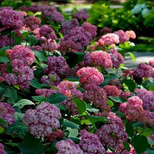 Hydrangea serrata ‘Preziosa’ is a captivating, compact lacecap hydrangea variety known for its vibrant color evolution throughout the season. It starts with pink blooms that deepen to rich purple, complemented by attractive bronzed foliage. ‘Preziosa’ thrives in part-shade with moist, well-drained soil and is well-suited for borders, cottage gardens, or shaded spaces, adding visual interest with its changing colors. It’s a hardy plant, ideal for both smaller garden spaces and as an attractive container plant.